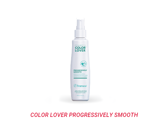 Step 1. Apply FRAMESI COLOR LOVER Progressively Smooth + FRAMESI COLOR LOVER Stop Frizz on wet hair and dry using a flat brush.