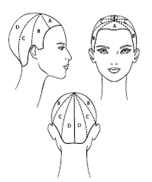 2. Subdivide the head into 5 sections: (This is where you will utilize framesi STRIKE4)