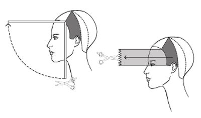 7. Point cut the hair in SECTION A square to the bridge of the nose.