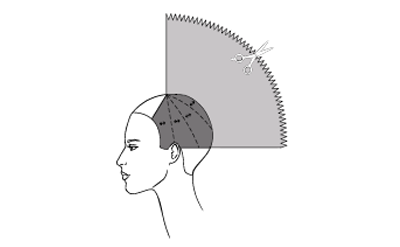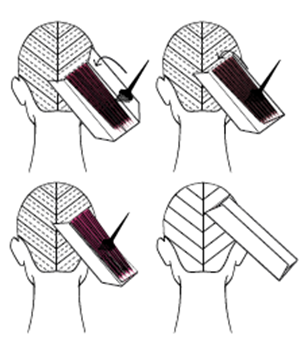 - SECTION A – isolate a front triangle joining ¾” of the eyebrow arches and ½“(1 cm) before the vertex.