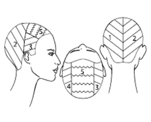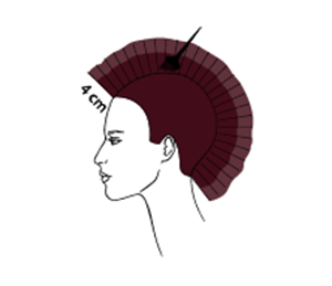 4. Comb the hair in natural fall and trace a line from ear to ear passing through the occipital bone.
