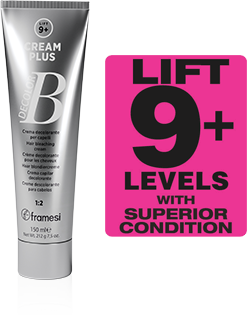 framesi® DECOLOR B® CREAM contains a special formula with protective oil to lubricate and protect the hair, while minimizing scalp irritation. Perfect for the most “drastic” lightening services and for effectively lightening re-growth.