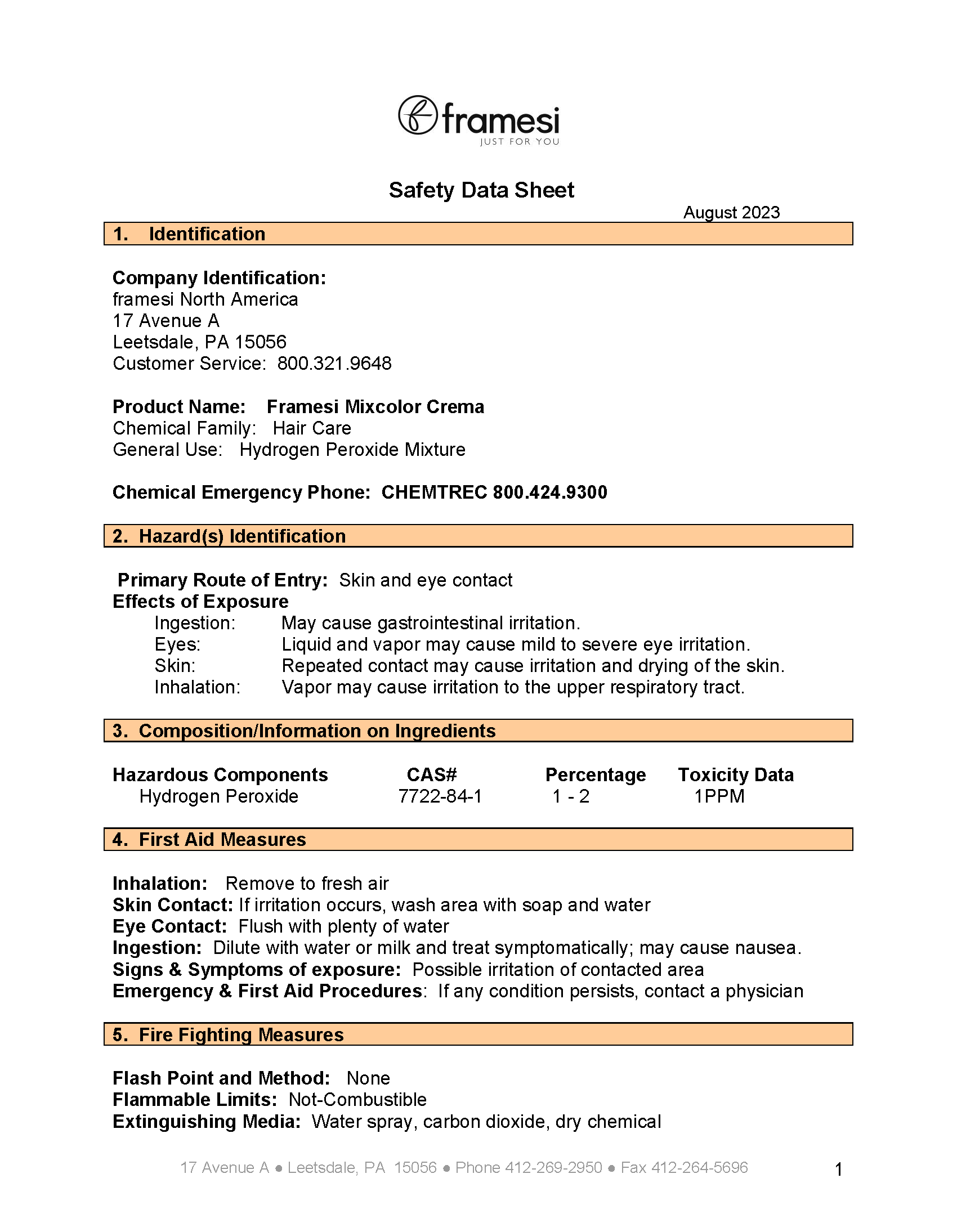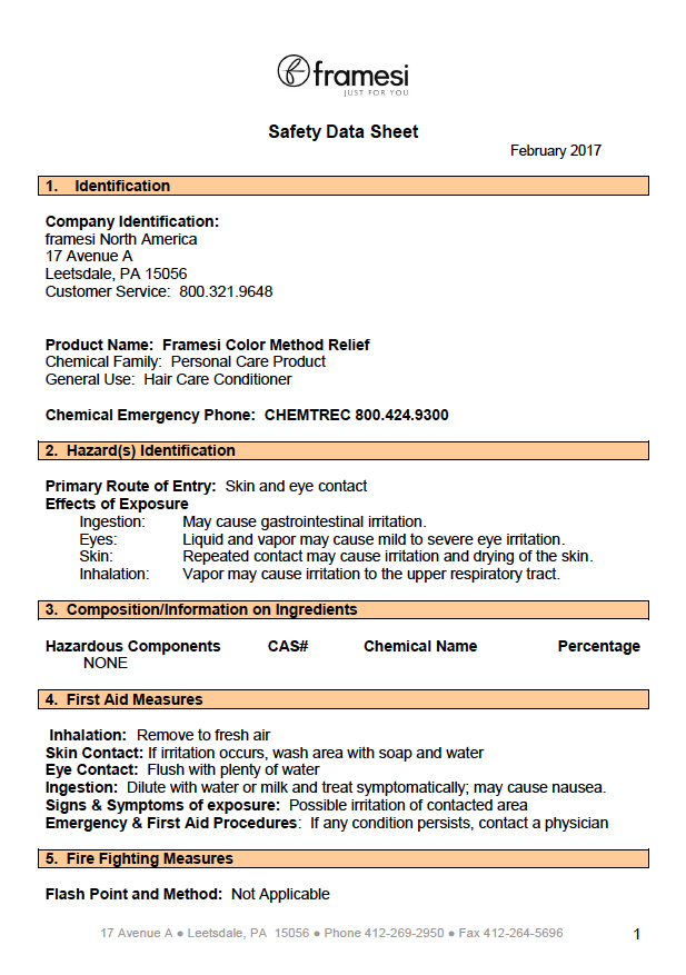 SDS Framesi Color Method Relief