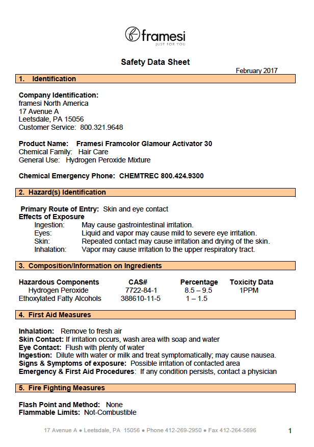 SDS Framesi Framcolor Glamour Activator 30