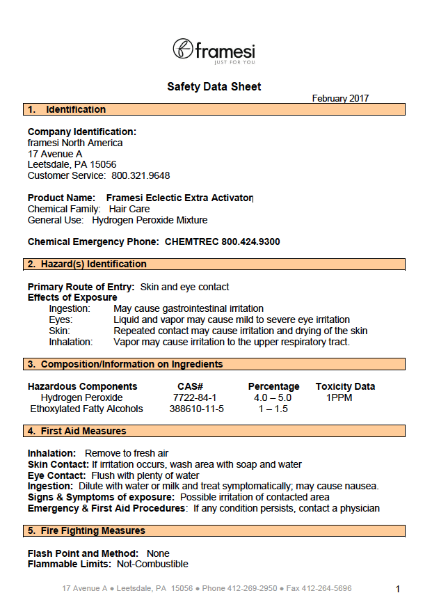SDS Framesi Eclectic Extra Activator