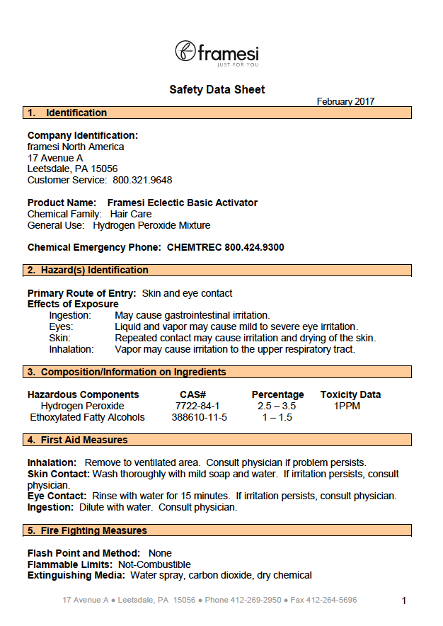 SDS Framesi Eclectic Basic Activator