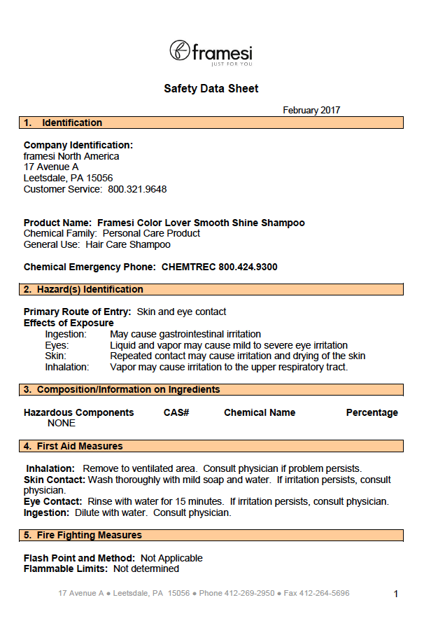SDS FRAMESI COLOR LOVER Moisture Rich Shampoo
