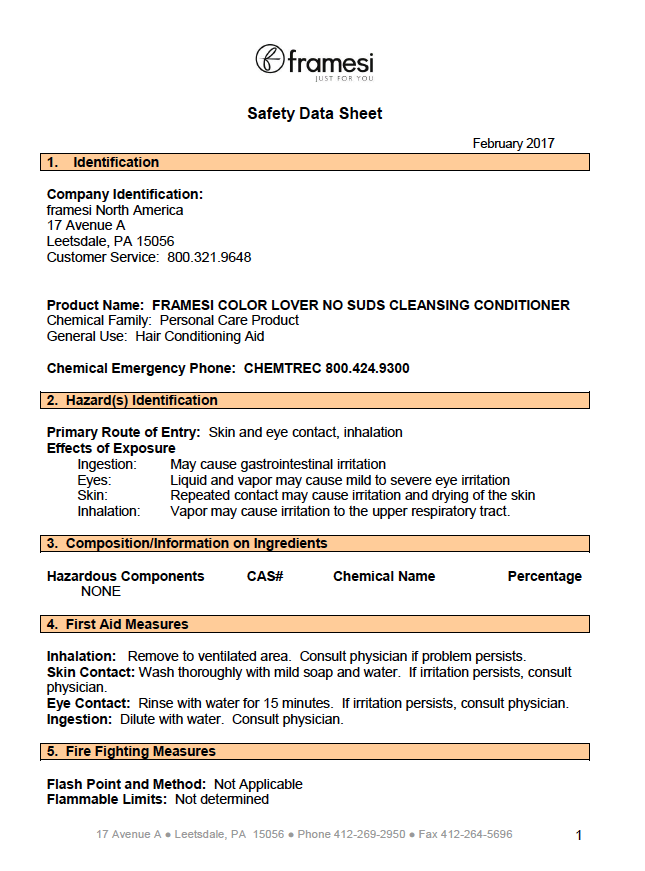 SDS FRAMESI COLOR LOVER NO SUDS CLEANSING CONDITIONER
