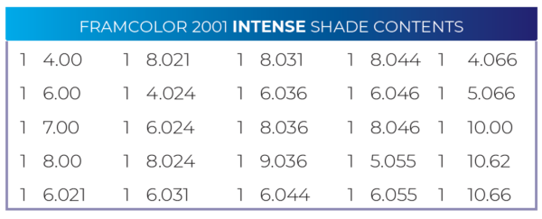 | 1 | Framcolor 2001 INTENSE Comparison Guide |