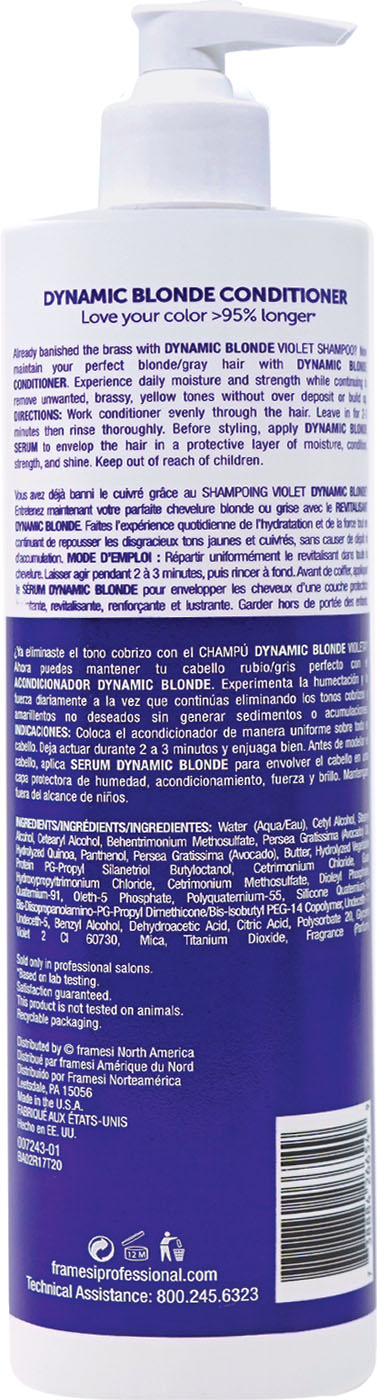 Pair everyone’s favorite violet shampoo with DYNAMIC BLONDE CONDITIONER to keep blonde and gray hair cool-toned, soft and healthy.