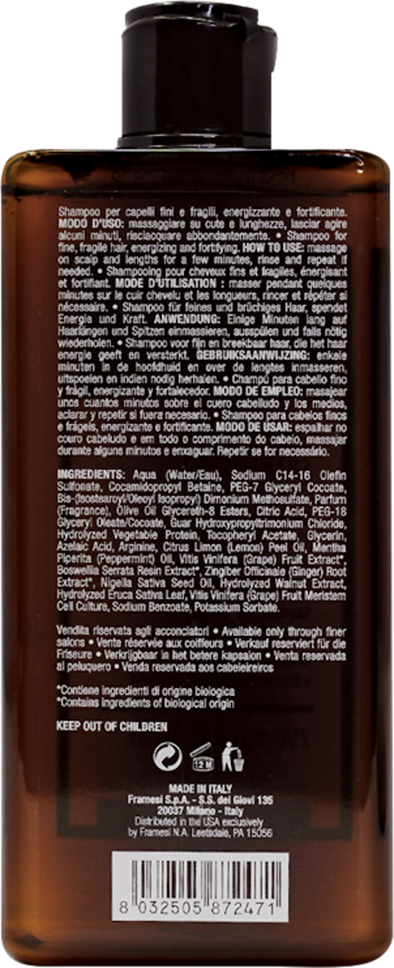 Aqua (Water/Eau), Sodium C14-16 Olefin Sulfonate, Cocamidopropyl Betaine, PEG-7 Glyceryl Cocoate, Bis-(lsostearoyl/Oleoyl lsopropyl) Dimonium Methosulfate, Partum (Fragrance), Olive Oil Glycereth-8 Esters, Citric Acid, PEG-18 Glyceryl Oleate/Cocoate, Guar Hydroxypropyltrimonium Chloride, Hydrolyzed Vegetable Protein, Tocopheryl Acetate, Glycerin, Azelaic Acid, Arginine, Citrus Limon (Lemon) Peel Oil, Mentha Piperita (Peppermint) Oil, Vitis Vinifera (Grape) Fruit Extract*, Boswellia Serrata Resin Extract*, Zingiber Officinale (Ginger) Root Extract’, Nigella Sativa Seed Oil, Hydrolyzed Walnut Extract, Hydrolyzed Eruca Sativa Leaf, Vitis Vinifera (Grape) Fruit Meristem Cell Culture, Sodium Benzoate, !)IJtassium Sorbate.