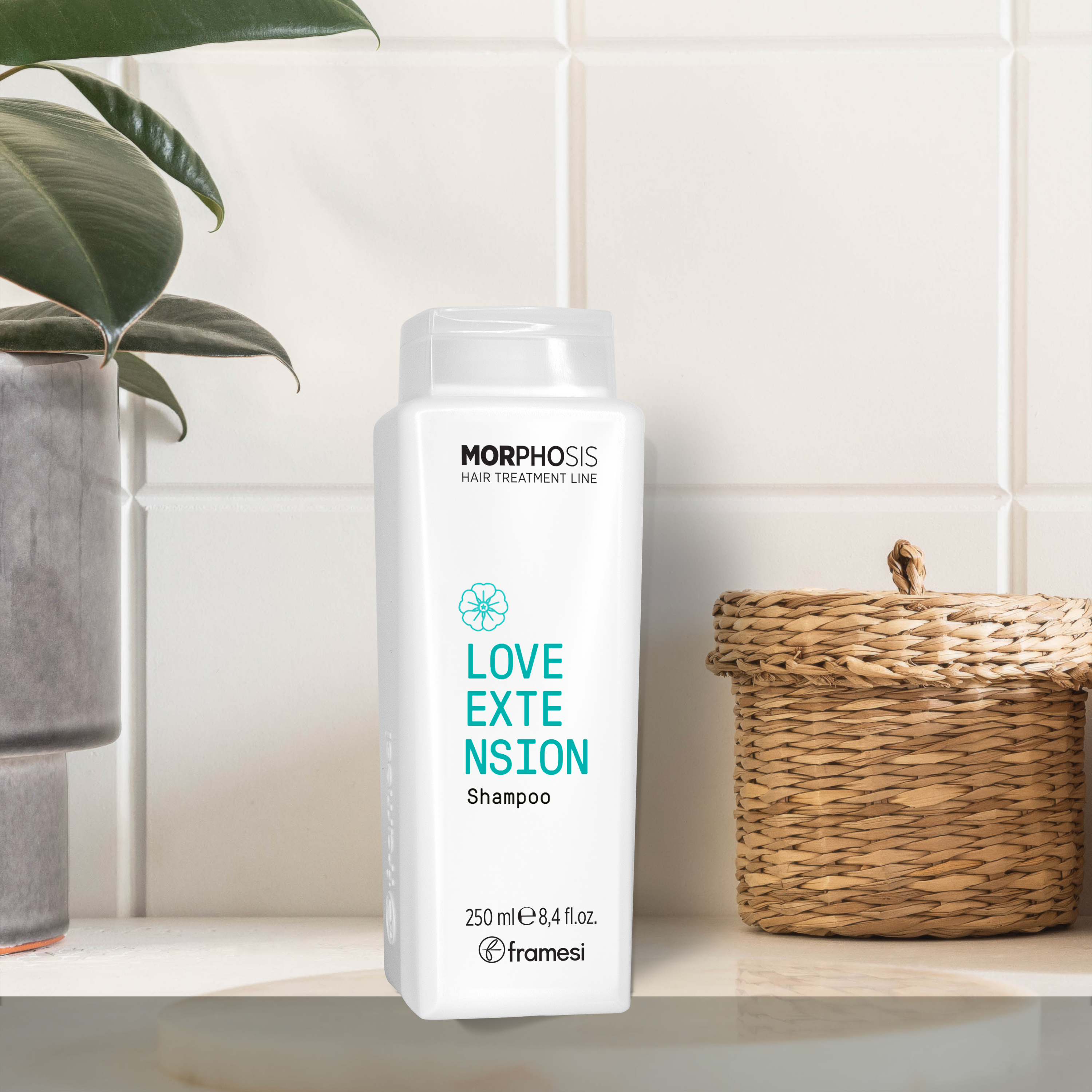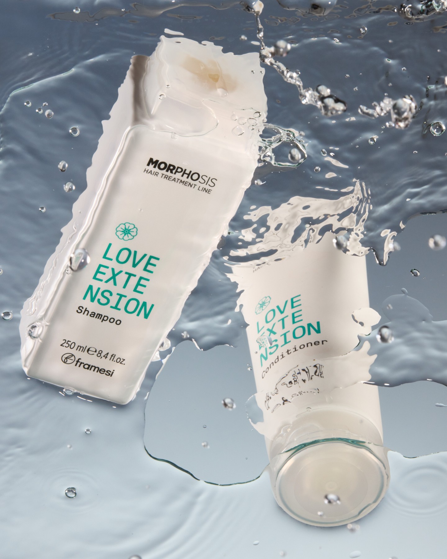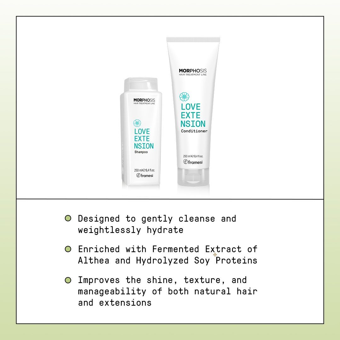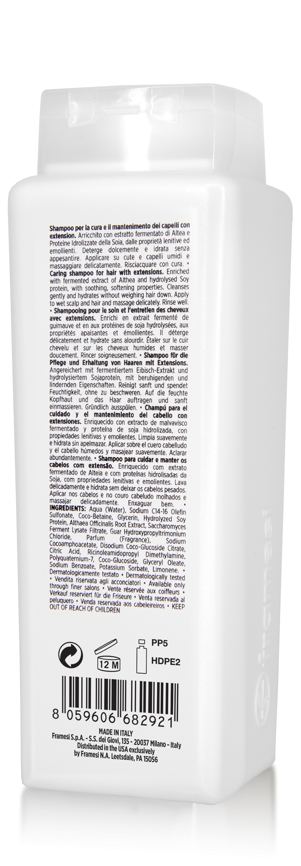 Enriched with Fermented Extract of Althea and Hydrolyzed Soy Proteins, with soothing, softening properties, cleanses gently and hydrates without weighing hair with extensions down, making it easy to detangle. Hair remains extremely easy to comb, soft, and silky.
