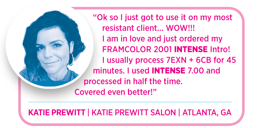 For 74 years, framesi has been providing INNOVATION That Works… consistent, superior products with integrity. This year, framesi is getting INTENSE. framesi FRAMCOLOR 2001 INTENSE, 22 shades (112+ if mixed with FRAMCOLOR 2001) that process in HALF THE TIME with 100% gray coverage and 4 levels of lift without compromising hair condition, shine, and longevity. So did you call your distributor yet? It’s time to get INTENSE with FRAMCOLOR 2001 INTENSE.